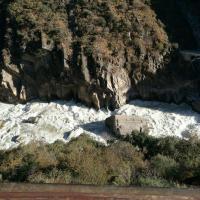 到虎跳峡的时候,中间经过一个桥,还要步行过去,然后再坐车,到达大门口需要自己走进去大约三四十分钟看到了壮观的景色。当时去的时候水位不是很大,所以说并没有那种非常狂的感觉。