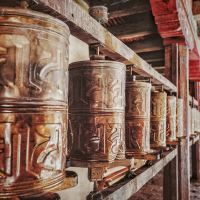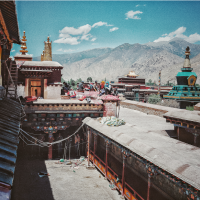 桑耶寺位于拉萨东南,是西藏第一座正规的寺庙,在藏人心中地位非凡,据说是人死后升天的必经之地。桑耶寺底层为藏式结构,中层为汉式结构,顶层为印式风格,主殿周围有4座印度式建筑的佛塔,分别为红、白、绿、黑4种颜色,代表寂静、自在、愤怒和广大,塔的