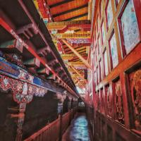 早在来西藏之前,忘记了看了哪一本书曾经提到过桑耶寺和青朴,都是那么清静,神圣,有灵气的地方。有人曾经说过桑耶寺的名称很有诗意,桑耶与上耶相似。进入桑耶寺,顺时针往里走,首先见到的是主殿。著名的三种建筑风格集为一身的主殿。藏,汉,印,三种风格