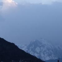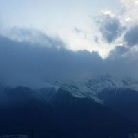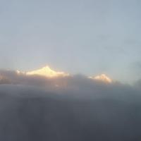 梅里雪山。住到了飞来寺附近。下午才到。傍晚雪山上面一层厚重的云,遮住了峰顶。很担心见不到“日照金山”,晚上个人感冒和海拔问题,一直难以入睡,做梦梦见自己拍到了“日照金山”。早餐打开窗帘,天空晴朗,云早已不见。雪山的峰顶完全展现。开始时冻的哇