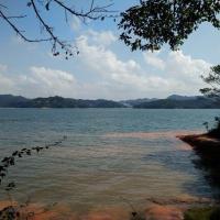 万绿湖风景优美,还是值得去游览一下!但在我们出游当天,由于人数不足。游船航班推迟了一小时发出。票价有点偏贵!万绿湖很大,船是两层的大观光船,坐在船上的感觉不错,不过马达声音比较吵,有点影响。另外,湖上岛的景点比较原始,基本上没有特别的内容