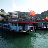 在万绿湖网上提前一天预订的,有专用兑换窗口不用排长队很赞!换票后马上排队就可以上船了,现在每个岛的游玩时间都没有限制,游船上满客人就开船这点很人性化
