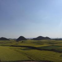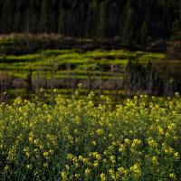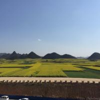 螺丝田距离罗平县城30分钟的车程,就在公路边上观赏,非常漂亮。最好在12点以后去看,当然得是晴天,太阳在正中的位置,光线洒落在柔美造型的花田上,美轮美奂。如果有蓝天白云则是最美的风景。