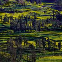 罗平螺丝田与其它地方的油菜花不同,这里的油菜花田美出了新高度,美出了新花样。一圈一圈的,成螺丝转状,极富观赏性。一共有三个观景台,最高一个的视野最佳,每个观景台有当地人收钱,一人五元。