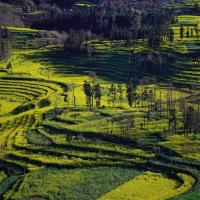 罗平螺丝田位于云南曲靖罗平县城西北十公里处的牛街,所以也有“牛街”油菜花的别名。这里的梯田是圈状的,远远看去像是螺丝上的旋纹。