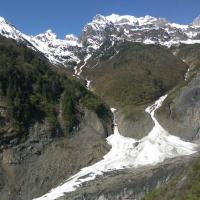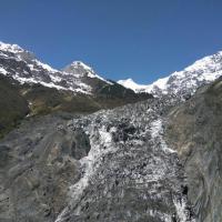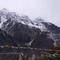 明永冰川位于梅里雪山主峰卡瓦格博峰山脚下,是梅里雪山景区的主要景点之一,我们是骑骡子上明永冰川,下马徒步登上栈道去到几个观景台。观景台离冰川贴得很近,可以清楚的看见冰川全貌。下山的时候,我们忽遇冰崩,只听见空中突然几声巨响,不知发生了什么,