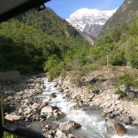 从飞来寺观景台大约30公里左右,进入明永冰川景区还需10多公里,然后乘电瓶车大约10公里,开始登山栈道,风景极佳,就是很辛苦,到可以看到冰川的观景平台要2个小时,到顶部仍需1小时,我体力不够,考虑到下山还需1小时,仅到达可以看到冰川的位置,