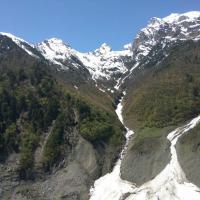 明永冰川是位于云南南和西藏交界处,藏族的神山之一,梅里十三峰非常壮观,明永冰川是梅里雪山的景点之一,海拔很低的冰川,没有高反。冰川从主峰下来一直到澜沧江江边上,如同一条银龙飞扑而来,很是壮观,因时间原因,没有能走到冰川边上,只是远处拍照了。