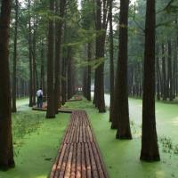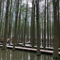 李中水上森林公园是这次旅行中最难忘的景点,虽说是人工园林但很惊艳,一排排高大的水杉上白鹭自由的在枝头飞翔,成林水杉纵横交错整齐划一。人很少没有人会影响你,置身其中,美妙无比。