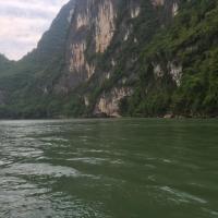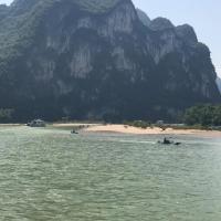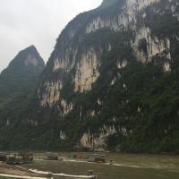 九马画山是漓江山水最经典的景观之一,在岸上或者游船上远远望去,凭借想象力,可以在山壁上看到骏马图案,据说能看出九匹马的人是状元之才。因为国庆缘故,我们此行程是从兴坪的竹排码头出发的,不是兴坪游渔码头,到达九马画山原路返回。1个小时的行程还是