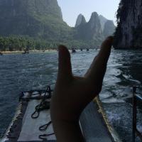 去到九马画山要坐竹筏,到达杨堤之后便可以乘坐竹筏畅游漓江了,两岸数不清的自然景观萦绕在身边,热情的船家还能根据客户的不同需求进行针对不同景观的讲解,但是很可惜,在画壁上我只看见5个马,但无论怎样,还是很感叹的。