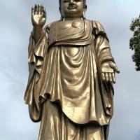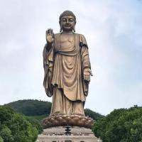 灵山大佛是灵山景区的标志性景观。大幅实际上有两个一个小的,一个大的..是按照先做了小的之后,再放大比例,做了88米的大佛!山大佛依山傍水,整座释迦摩尼佛像用了725吨黄铜铸造而成,88米的净高很有气势。