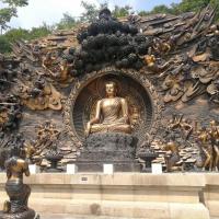 灵山大佛所在位置系唐玄奘命名的小灵山,故名灵山大佛。可见三山环抱,灵山大佛巍然屹立,气势雄伟壮观。九龙灌浴国内最大的音乐动态青铜雕塑群,再现了释迦摩尼诞生的场景。