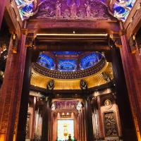 灵山梵宫坐落于烟波浩淼的无锡太湖之滨,钟灵毓秀的灵山脚下,气势恢宏的建筑与宝相庄严的灵山大佛比邻而立,瑰丽璀璨的艺术和独特深厚的佛教文化交相辉映。