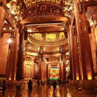 灵山梵宫是世界佛教大会的常住地。金碧辉煌,建筑上的精雕细工加上现代化的灯光效果,营造一种神秘朦胧的佛教气氛。人在其中感觉到就像佛教的天堂一样。