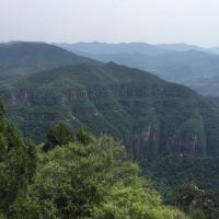 带着一丝的迷茫来到了黛眉山景区,做大巴倒小车,一路的盘山公路,一路的波澜壮阔,经历了三个多小时终于到了,刚一进山门,再次上车盘旋到山上,不得不感叹大自然的造化,洛阳城自古就不缺少历史,黛眉山是商汤的黛眉娘娘修仙的道场,传说商汤是当时一个部落