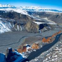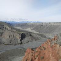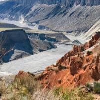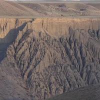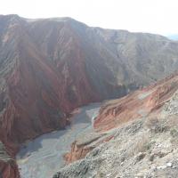 安集海大峡谷,别称红山大峡谷,发源于天山山脉,通过长年冲刷,在通古特附近冲出天山峡谷,在天山北坡下形成了规模宏大的冲击扇,河谷冲击扇规模宏大,以伞形向北张开,甚称地质奇观。此处非景点,本地人知道也不多,几乎无游人,拍摄危险系数较大,站在山顶往谷底看,背脊发凉。