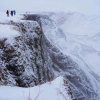 三月去安集海大峡谷,喜欢拍照的可以去哦,目前这个景点免费,没有班车前往,从奎屯打车去120元,会还价的可以再杀杀价,应该还有还价的余地,大峡谷很深,落差200多米,我去的时候遇上前一晚下雪,峡谷一片晶莹,背风没有积雪处露出红色土层,当中午化