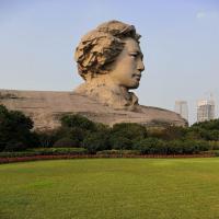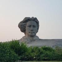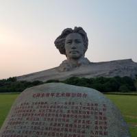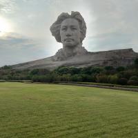 橘子洲虽然不大,但是如果走着一圈还是很费力的,建议花20元购买电动游览车票,它回带着你一站一站的游览。这样就不会把时间浪费在去往每一个景点的路上了。挑选了一个最具有代表性的点来描述,就是大家都知道的,毛爷爷的石刻雕像。从小父母的教育比较红色
