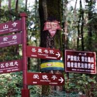 由于时间比较紧张,于是并没有从东门进入岳麓山,而是直接从湖南大学这个南门入口进。去的那天是周六,出租车排成长龙,于是还没看到毛爷爷呢,就下taxi了,自行走路到岳麓山风景区门口。还好,大约10多分钟路程。真心觉得这种景点不能周末来,太多太多