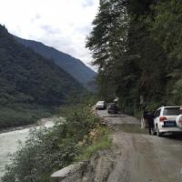 从波密到林芝,有一段路非常难走,被誉为通麦天险!每一年都不知道多少人在这里终结了自己的生命。就在这一天,我们亲眼看见一具尸体摆在路边,因为打捞伤员,我们在通麦堵了3个小时路上的交警说,今天掉了2个小车下去