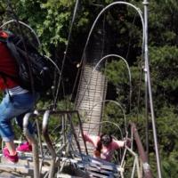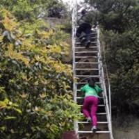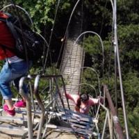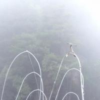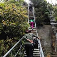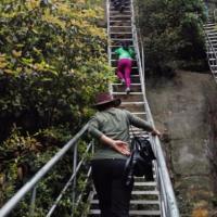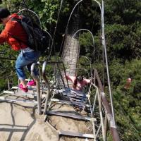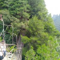 其实整个乌龙寨景区,就是有大雾,也能玩的很尽兴,因为里面狭窄的的山路走起来特别有趣。索桥被关闭了,我们爬了接近垂直的梯子上去,这个是乌龙寨景区最好玩最好玩的地方,没有之一。边上就是悬崖,连凸起的石头都看不到,我抓着细细的钢管,一个台阶一个台