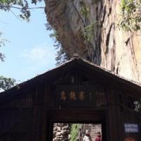 从杨家界索道上站到乌龙寨不远但是要爬山,而且路很危险,建议老人小孩的别去为好,要想上坐滑竿,好像60吧抬你上去千辛万苦到了门口,没有想到这才开始啊乌龙寨有三道鬼门关,第一道叫”一步难行“,小路一个急弯向右,一块岩石兀然突出,人必须紧贴着岩壁