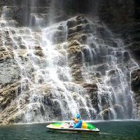三叠泉可以坐缆车到一叠再走下去,也可以直接全程走路下去,区别是缆车6分钟,走路50分钟左右,一下观光车,我带着小孩慢慢走,大概走了快一个小时左右,去到下面看瀑布,真的好漂亮好壮观,不愧“飞流直下三千尺,疑是银河落九天”,还可以玩下水,超赞返