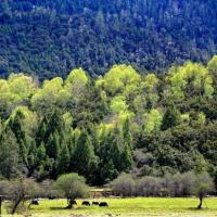 鲁朗林海景区位于林芝地区,林海郁郁葱葱,风景优美,在天气晴朗的时候还能远眺南迦巴瓦峰,附近住着很多原著居民,一片原生态的景象。