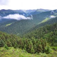 鲁郎林海位于林芝县境内,从八一镇向东,翻过色季拉山口即到。此地风光优美,远处的雪山、冰川,与近处的原始森林、村落、河流交相辉映。鲁郎林海的树种及植被丰富,林中有大量鸟类栖息。