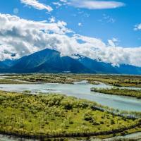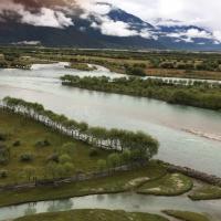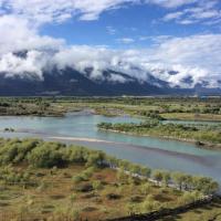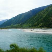 从拉萨去林芝的途中,看到美丽多姿的尼洋河,河水呈翠绿色,蜿蜒在雪山脚下,时而宽时而窄,草原、森林、河滩变换着......