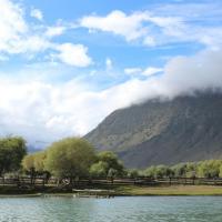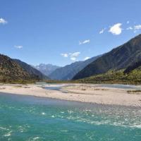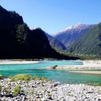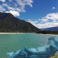 尼洋河顺着河床蜿蜒曲折而行,河面也因地形的不同时宽时窄,时浅时深。时而蓝时而绿,都说大海是蓝色的,生在黑土地上的我没有看见过大海,可一见美丽的尼洋河蓝的这么晶莹剔透,尼洋河重新定义了我对蓝的认知。无法探究你是否为神山的眼泪,但我可以肯定你来