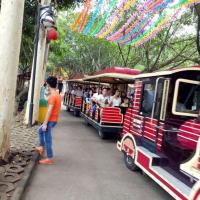 龙凤山庄影视基地园区不大不小。适合大小一家人一起游玩!我们是两个大人带一70岁老太太和4岁半女儿来的,结果只需买两成人票就好了!70岁以上老人和1.2米以下儿童免费,这政策很人性化,赞一个!进入景区大门左手边有游览电瓶车,不想走路的或老人小