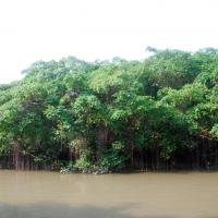 小鸟天堂的游船由当年的竹筏已改为古色古香的仿古船只,它带着我们在蜿蜒的河道上徐徐前行,过了好一会儿才见到那颗有着几百年历史的古榕树。这颗神奇的大榕树依然是那么枝繁叶茂,盘根错节,覆盖着一个小岛,一树成林!
