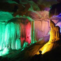 宝晶宫非常震撼的自然景观,就是门票有点小贵。在洞口排队时就感到凉风阵阵,老妈对此次出行总算没有抱怨。洞内的景观还不错,小朋友还可以学些地理知识。摄影爱好者们也可以大显身手啦!我这个菜鸟就拍了许多漂亮的照片,孩子说感觉像西游记里的龙宫似的。