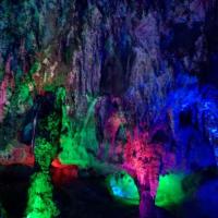 宝晶宫位于英德市西南的燕子岩山脉中,由宝晶宫溶洞、碧绿湖、碧落洞和狮子山等景区组成,溶洞是这里的最大看点,奇形怪状的钟乳石在景观灯的照耀下,显得分外迷人,更有“岭南第一洞天”之称。来到景区,未入“宫”门,其风景色已让人驻足:三面环山、平静如镜的宝晶湖倒影着山色,几座青翠的孤山错落湖滨,九曲木桥连接湖心亭台,舟泛湖中,美景天成。
