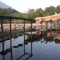 周六去牛鱼嘴风景区的人好多玻璃桥的票只能在山上买上山道变成排玻璃桥的队都说要排三个钟所以看看就回头在山下玩了水上游乐浮桥什么的玩的好兴奋帮两位小朋友都多带了一套衣服玩到湿身还是好开心山下湖边还有滑索玩30元鼓起勇气玩了一次就嚷着去玩第二次了