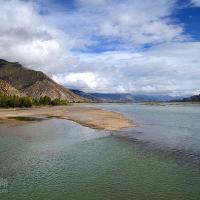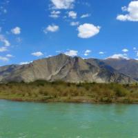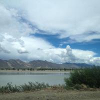 拉萨河在拉萨的南部蜿蜒而过。站在拉萨河畔,浑浊的河水缓缓地从脚下流过。拉萨河的南岸是沙地和不多的草木。再远处光秃秃的石山,山的远方依然是山,连绵向远方伸展