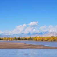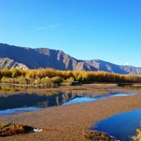 318国道翻越过米拉山口后进入拉萨河流域。拉萨河又名“吉曲”,意为快乐河,是拉萨的母亲河。阳光下,河水呈现出宝石般的湛蓝色,水面平静,河滩上的树木泛着金黄。从尼洋河到拉萨河,318国道基本上与雅鲁藏布江干流一路平行。行车大约7小时后,顺利抵