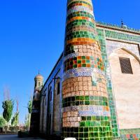 香妃墓位于喀什市东郊5公里处的浩罕村,原名为阿帕克霍加麻扎,是新疆最著名的伊斯兰教圣裔家族的陵墓,后来因传说乾隆皇帝的香妃埋葬于此。事实上这里是一大家族五代72人的陵墓群,香妃墓只是其中之一。香妃墓是一座大院,院内修建了门楼、小礼拜寺、大礼拜寺、教经堂和主墓室等建筑,建筑都恢宏漂亮,又带有非常浓厚的伊斯兰教风格,这种绿色瓷砖、圆拱门窗的房屋非常特别,可以好好参观一下。