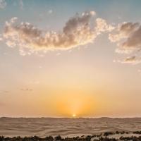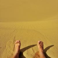 到达塔中时已经是晚上七点多,在旁边的川菜馆吃了饭,就急匆匆的拿着相机向塔克拉玛干沙漠深处跑去,已经迫不及待的欣赏沙漠日落了。白天,沙漠的气温非常高,虽然太阳刚刚开始下落,但沙漠的地标气温还是非常高,赤脚踩在沙子上非常烫脚。日落前的塔克拉玛干