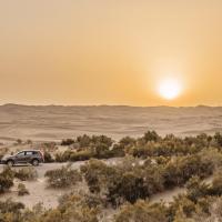 游览罗布人村寨除了探秘古老的罗布人民俗文化外,另一个看点就是塔克拉玛干沙漠。村寨的南面是塔克拉玛干沙漠,塔克拉玛干沙漠,维吾尔语意“进去出不来的地方”,人们通常称它为“死亡之海”。它位于南疆塔里木盆地中心,是中国最大的沙漠,仅次于非洲撒哈拉