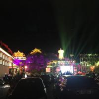 每天清晨和傍晚,独克宗古城周边的当地居民都会自发聚在一起跳舞,而且非常欢迎游客加入哦。夜色下的龟山,夜色下的古城都非常迷人。