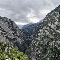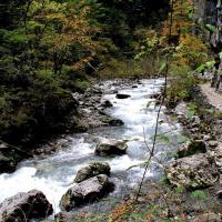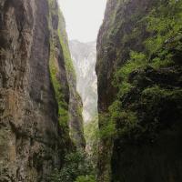 巴拉格宗大峡谷的生态环境保护得很好,漫山遍野,郁郁葱葱的冷杉和云杉,海拔相对较高。走进峡谷,犹如走进一条蜿蜒曲折的深巷,峡谷最宽处20米,最窄的地方仅10余米,若留意观察,峭壁上隐约还能看见雕刻着粗犷的岩画,而这些都是古代村民迁徙时留下的符