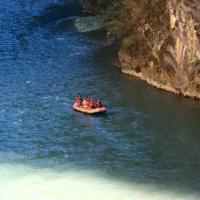 巴拉格宗大峡谷两岸青山连绵不绝,巍峨壮观!峡谷中间溪水清澈见底!去的时候我们是走的,边有边欣赏着这壮丽的美景,回来的时候租了一条皮划艇,顺着溪水水流一路漂流回来,别有一番滋味!
