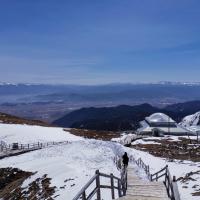 从蓝月山谷一直上来的话,就可以来到石卡雪山的山顶了,海拔是4500米,风光相当的不错,虽然是比较冷一点穿多几件衣服就完全没有问题,也不会有太大的高原反应。不过上雪山要看运气,我们去的时候上半段缆车都没有开放。