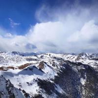 石卡雪山这里可以看到稻城亚丁三座神山(仙乃日,央迈勇,夏诺多吉),还可以看到玉龙雪山,哈巴雪山,围着栈道走过去还可以看到梅里雪山等等,山顶积雪很厚,没有见过雪的人都撒开了花玩耍:打滚儿、嘻戏,乐在其中。会当凌绝顶,一览众神山,绝对是一个值得