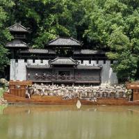赤壁古战场离武汉很近,两个小时路程,三国赤壁古战场在赤壁市赤壁镇,从赤壁市开车半个小时就到了。进入景区,可以敲锣打鼓,舞枪弄棒,感受一下古时候战争场面。古战场有条小河,可以自己踩着绕湖一圈,欣赏沿路风景。上岸后拾阶而上,学习一下三十六计,看