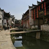 李坑是古徽州乡村民居的代表,大山中的一片谷地,小河绕村而过,村民巧妙地筑坝拦水,使水流平缓下来以便用水。河上诸多的“独木桥"是当地特色。