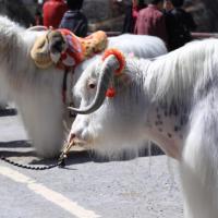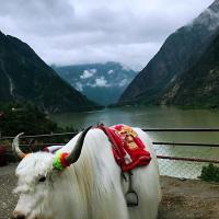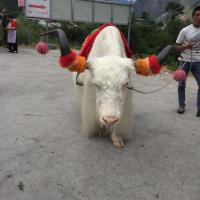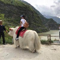 路边下车看到的叠溪海子地震遗址,很震撼。免费参观。有人让骑打扮一新的白牦牛拍照,算是生财之道。路边的东西质量较差,不建议购买。
